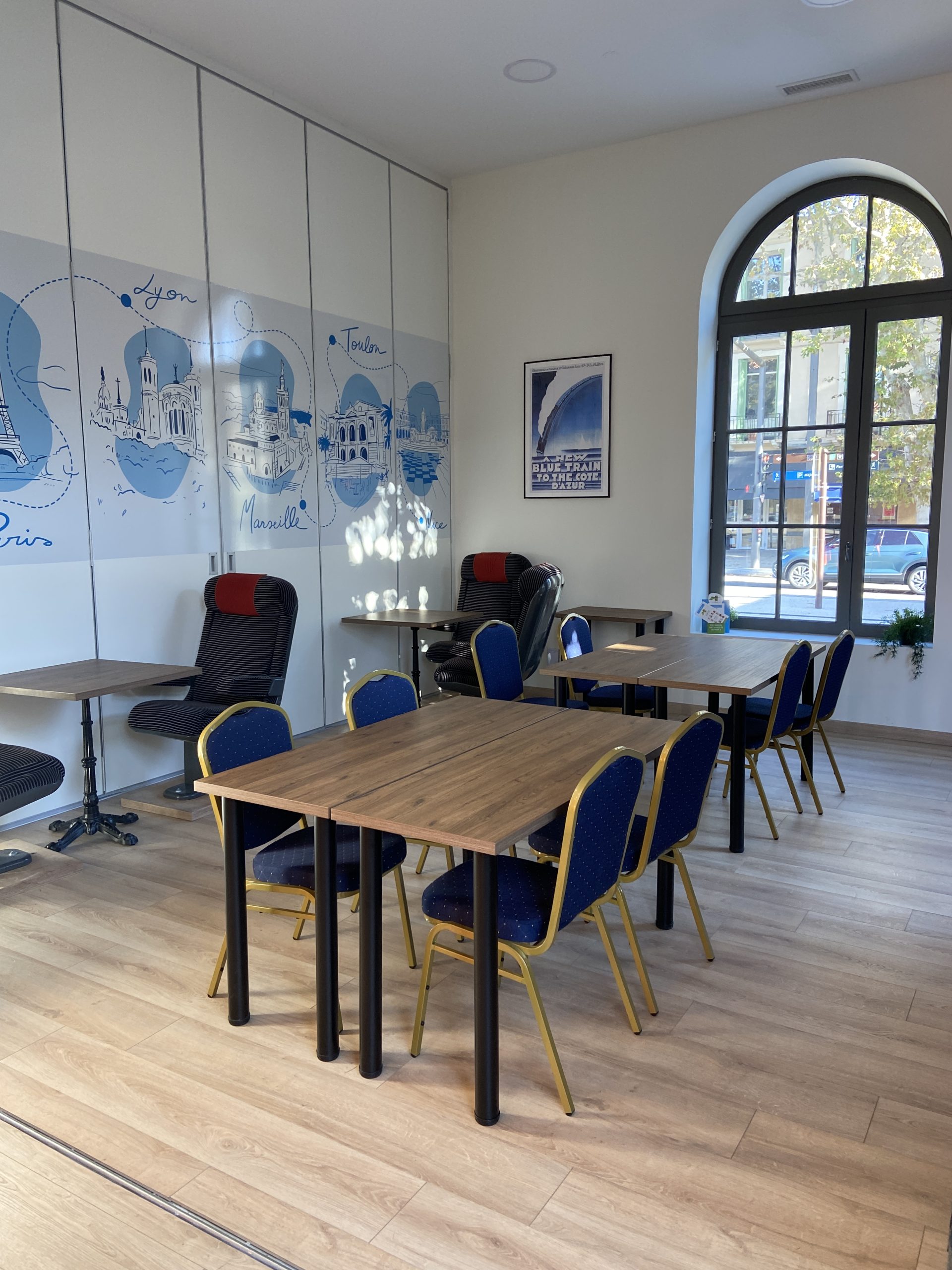 Le Hall, Le Salon Bleu, Le Wagon-Restaurant ou encore le coworking Ste Victoire vous propose des ambiances différentes, mais toujours la même qualité de service.